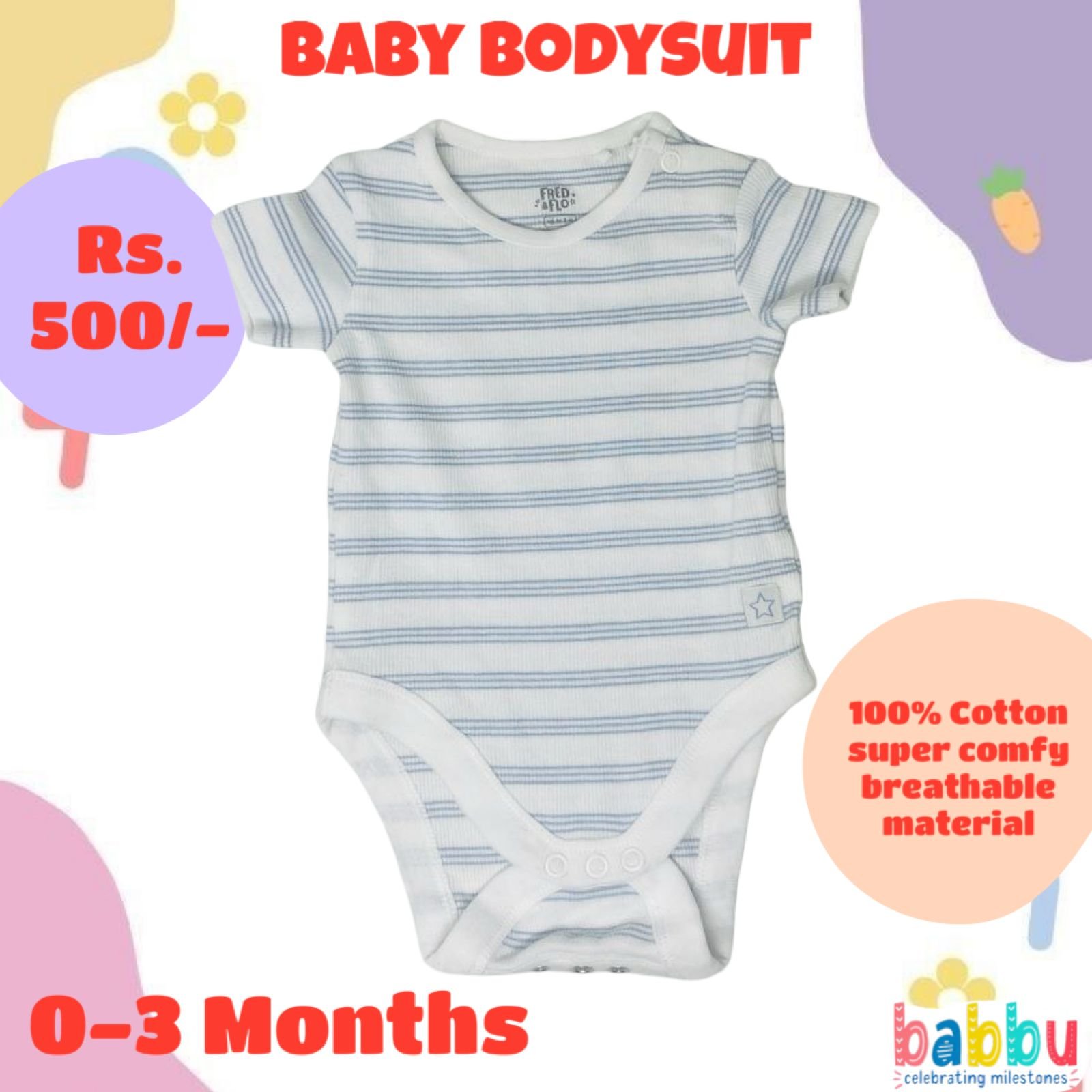 Bodysuits 0-3 Months – Light Blue Stripes