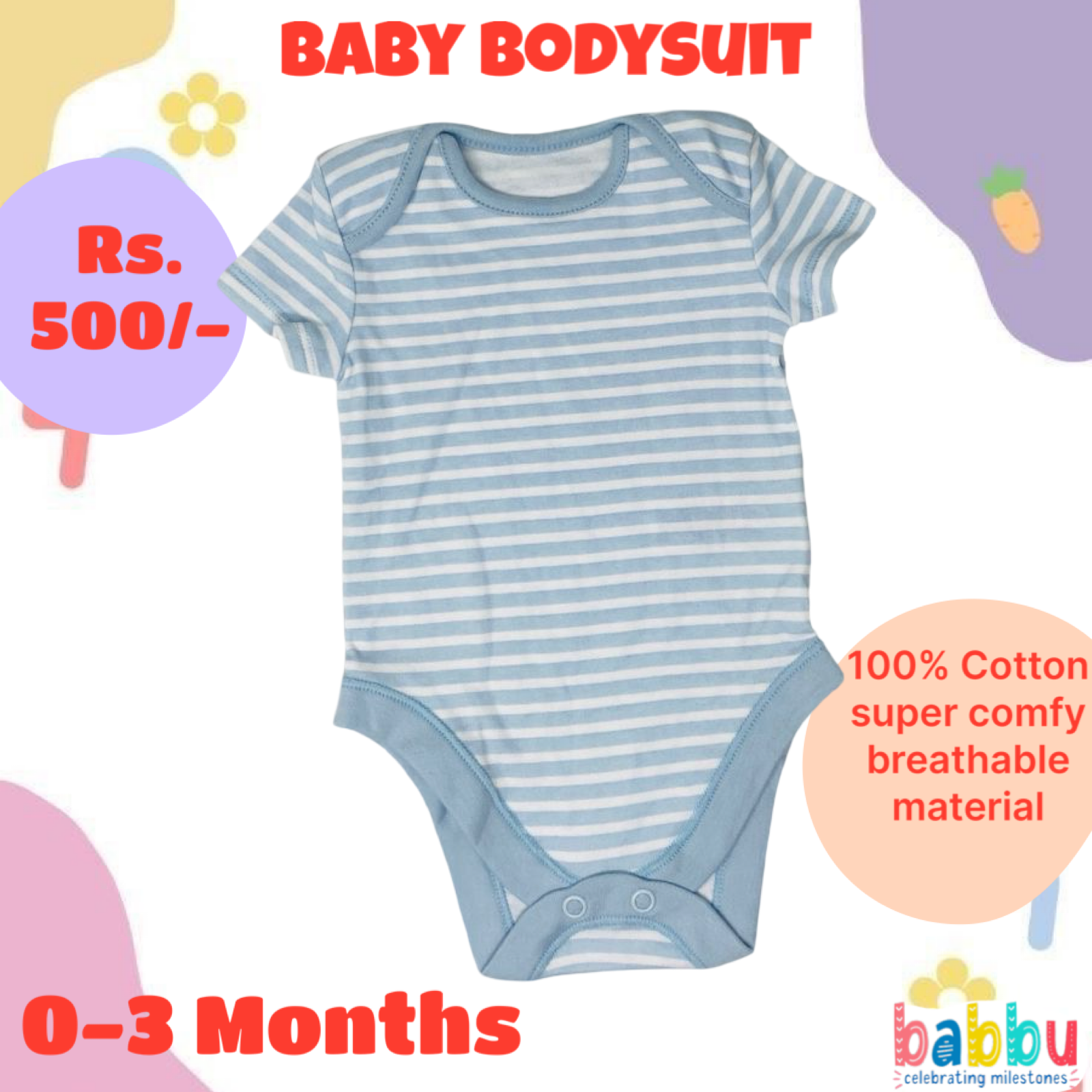 Bodysuits 0-3 Months – White and Light Blue Stripes