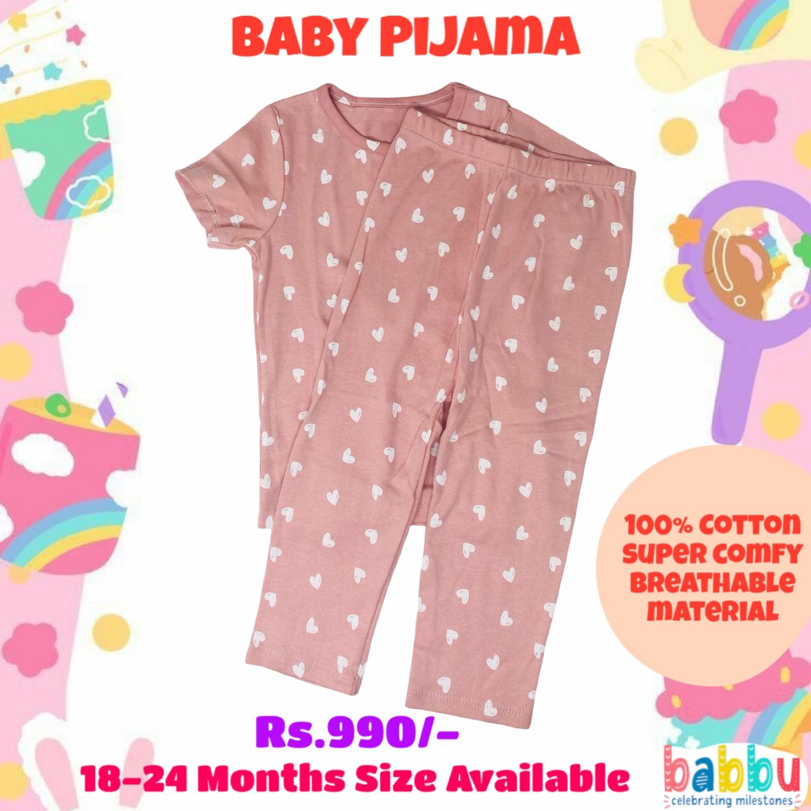 Pijamas 18-24 Months – Salmon Pink with White Hearts
