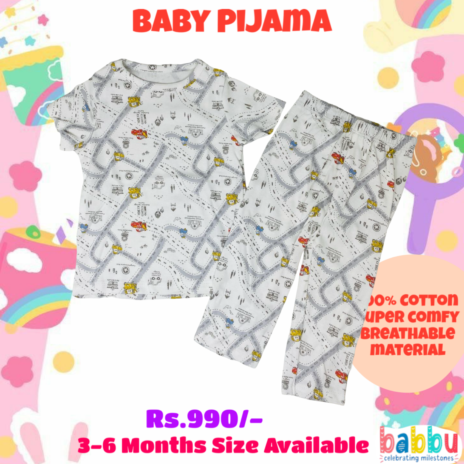 Pijamas 3-6 Months – Roads and Cars