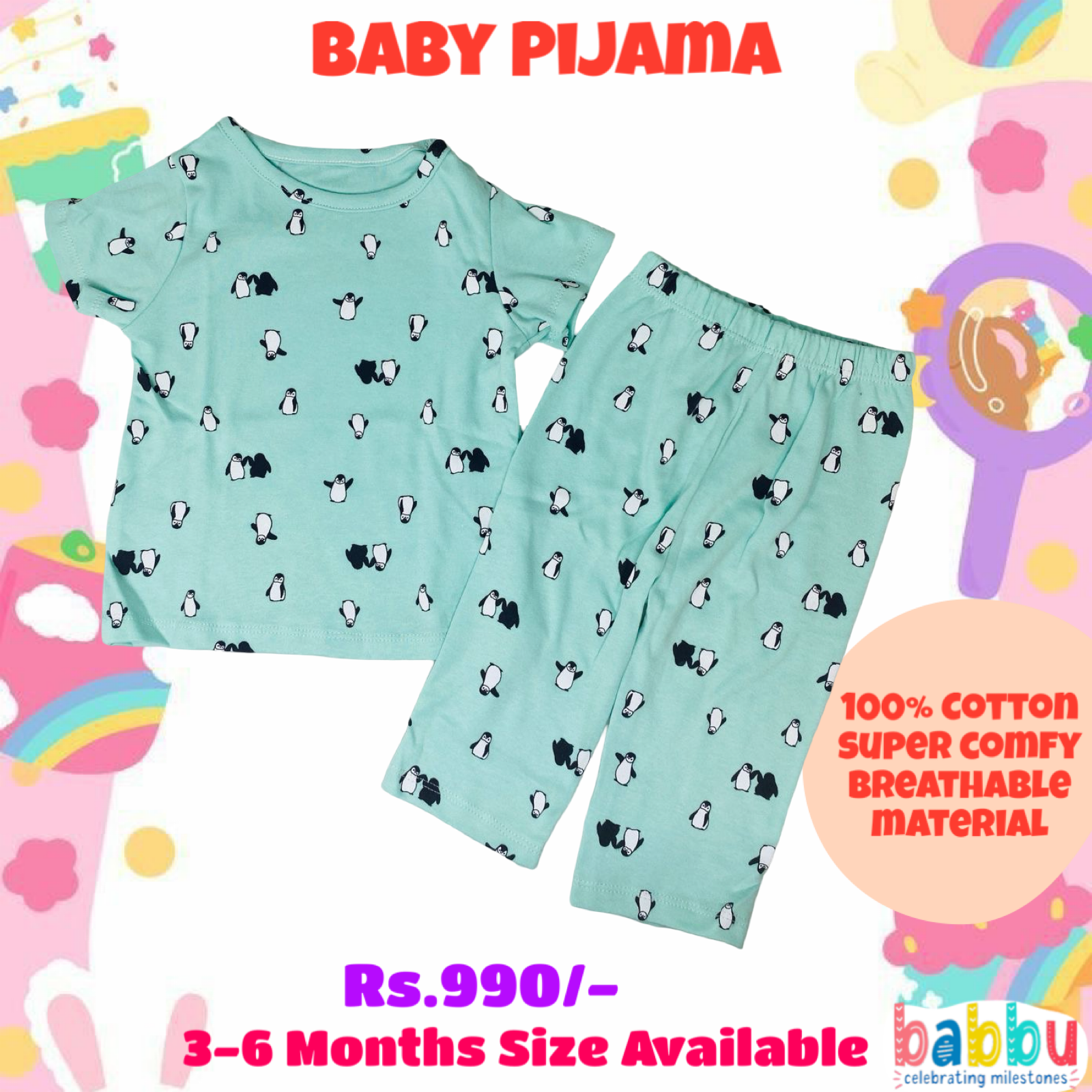 Pijamas 3-6 Months – Teal Penguin