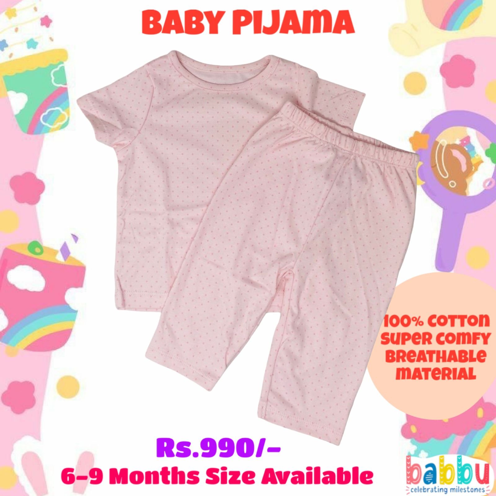 Pijamas 6-9 Months – Pink with Pink Spots