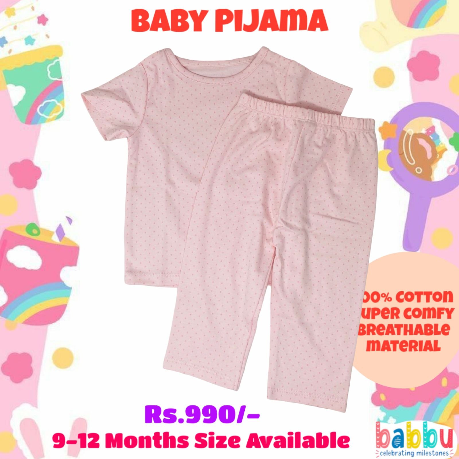 Pijamas 9-12 Months – Pink with Pink Spots