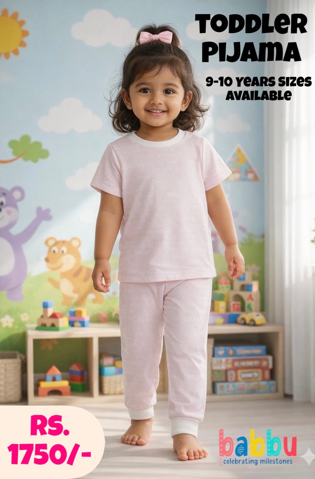 Pijamas Long Sleeve 9-10 Years – Baby Pink with Smile Print