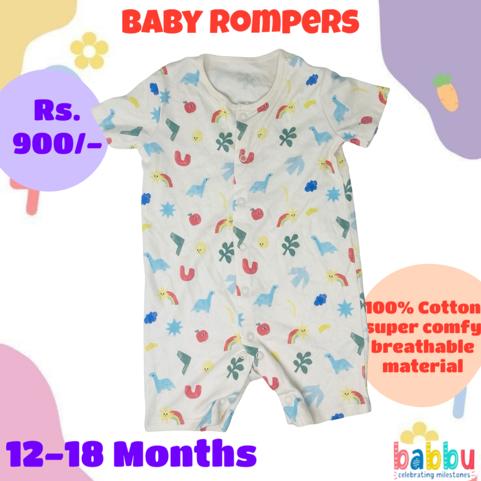 Rompers 12-18 Months – Dinos and Shapes