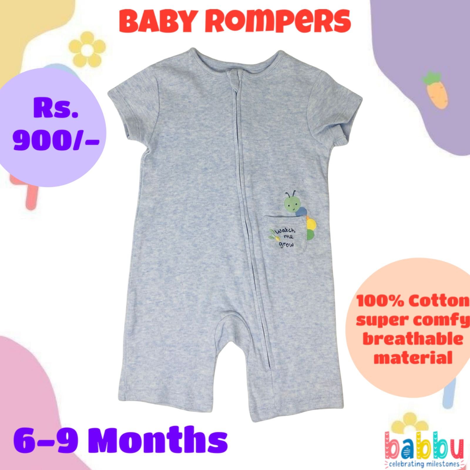 Rompers 6-9 Months – Catepillar with Pocket
