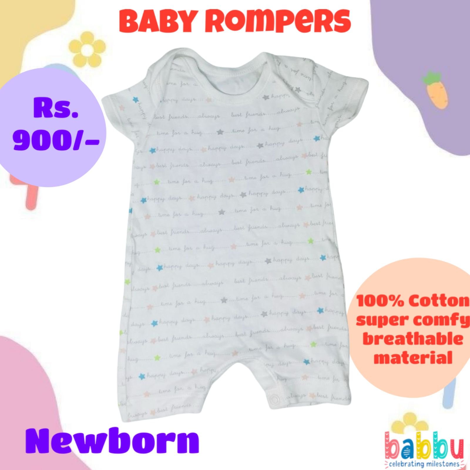 Rompers Newborn – Happy Days Print with Small Multi Color Stars