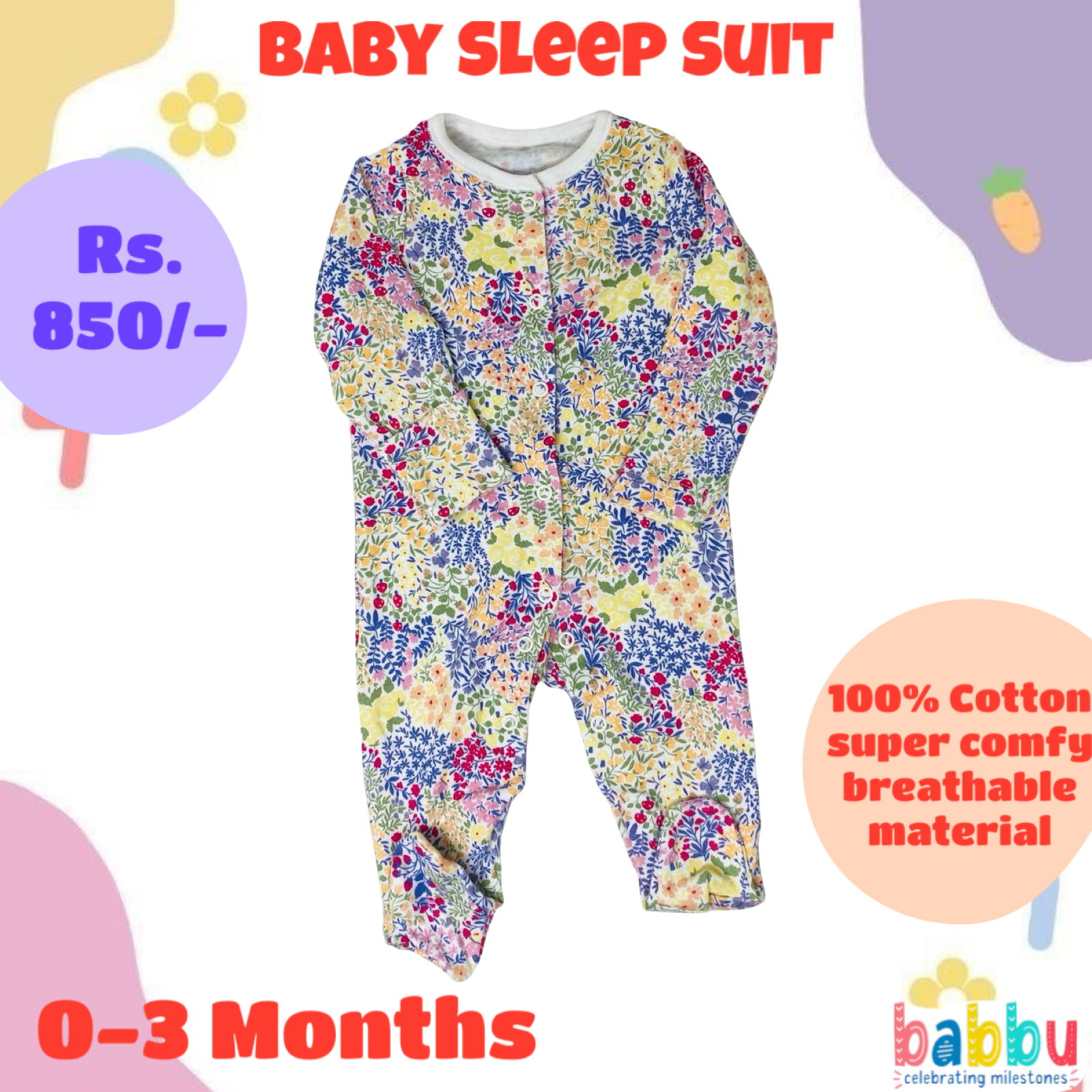 Sleep Suits 0-3 Months – Flowers