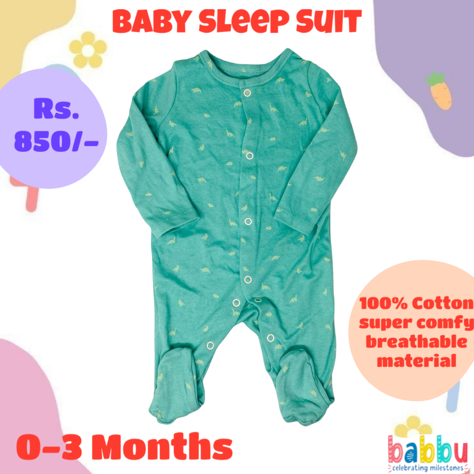 Sleep Suits 0-3 Months – Green with Small Dinos