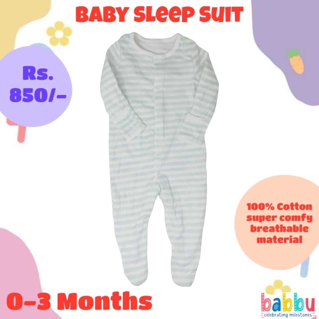 Sleep suits 0-3 Months – White with Light Green Stripes