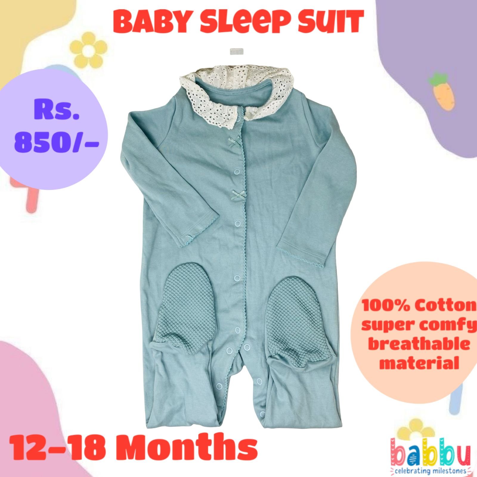 Sleep Suits 12-18 Months – Teal Frill