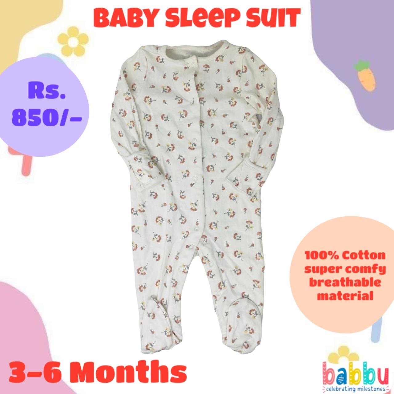 Sleep suits 3-6 Months – Beige Flowers