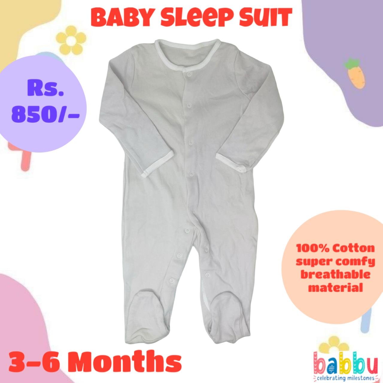 Sleep suits 3-6 Months – Beige with White Border