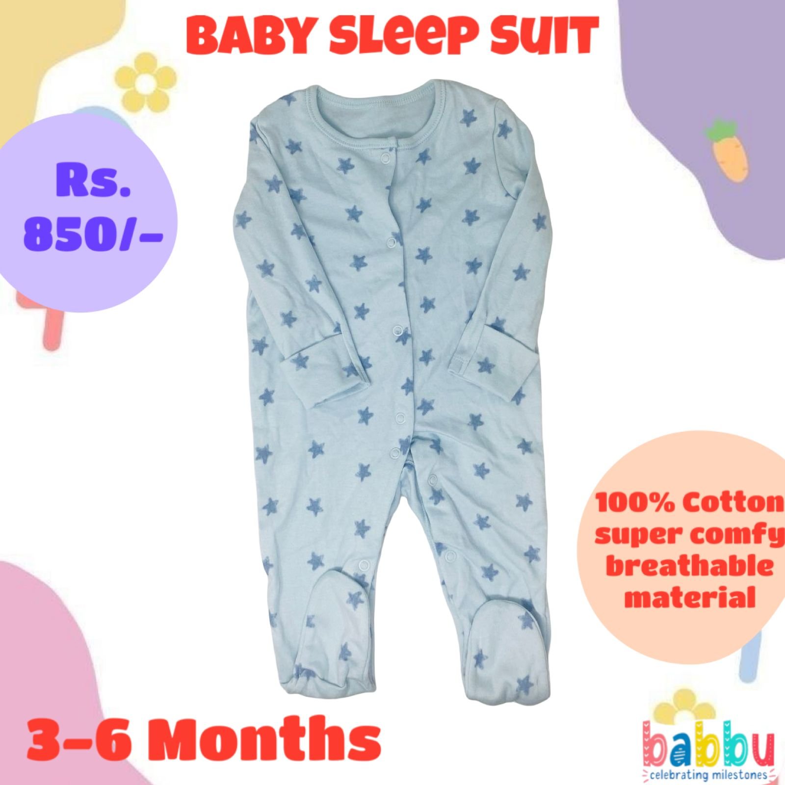 Sleep Suits 3-6 Months – Light Blue with Blue Stars