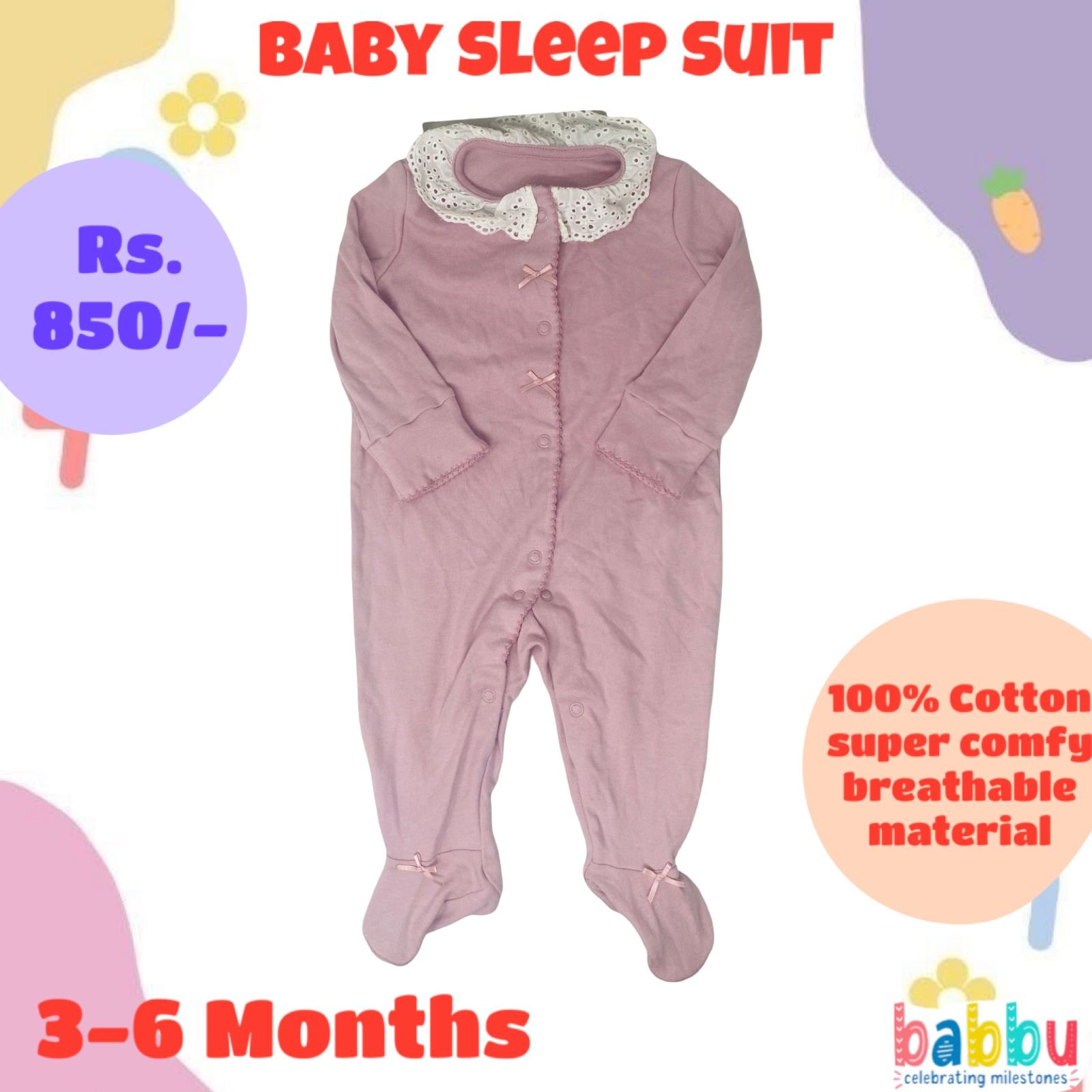 Sleep Suits 3-6 Months – Salmon Pink