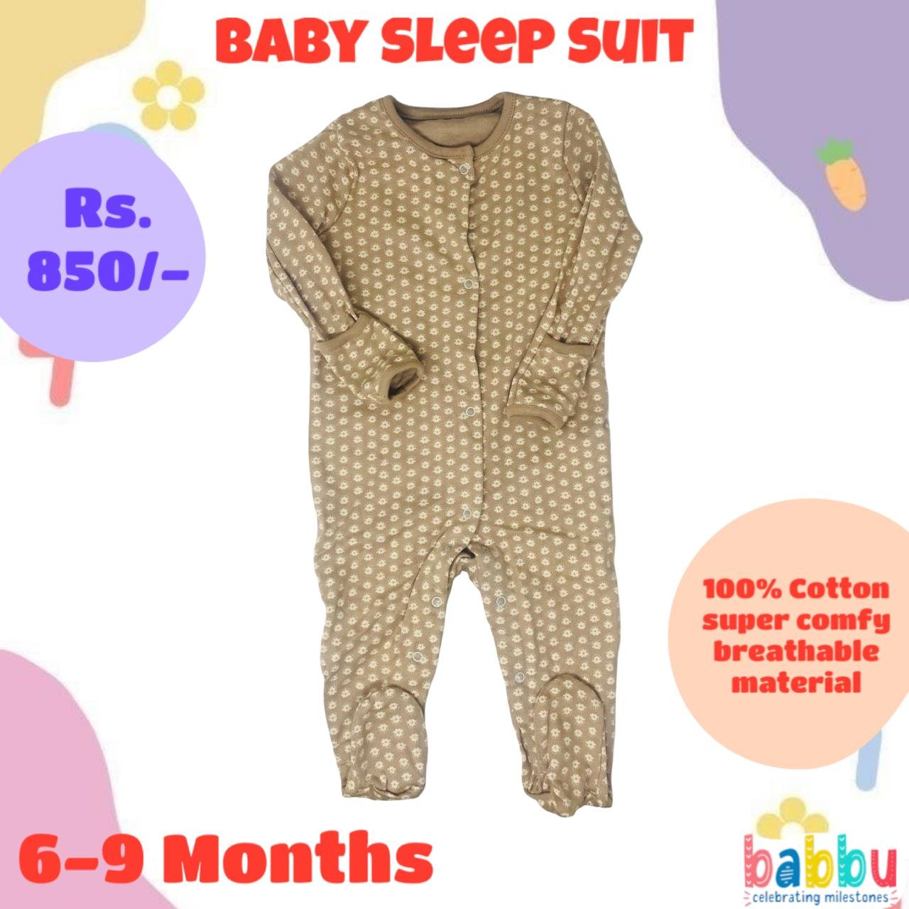 Sleep suits 6-9 Months – Brown with Beige Flowers