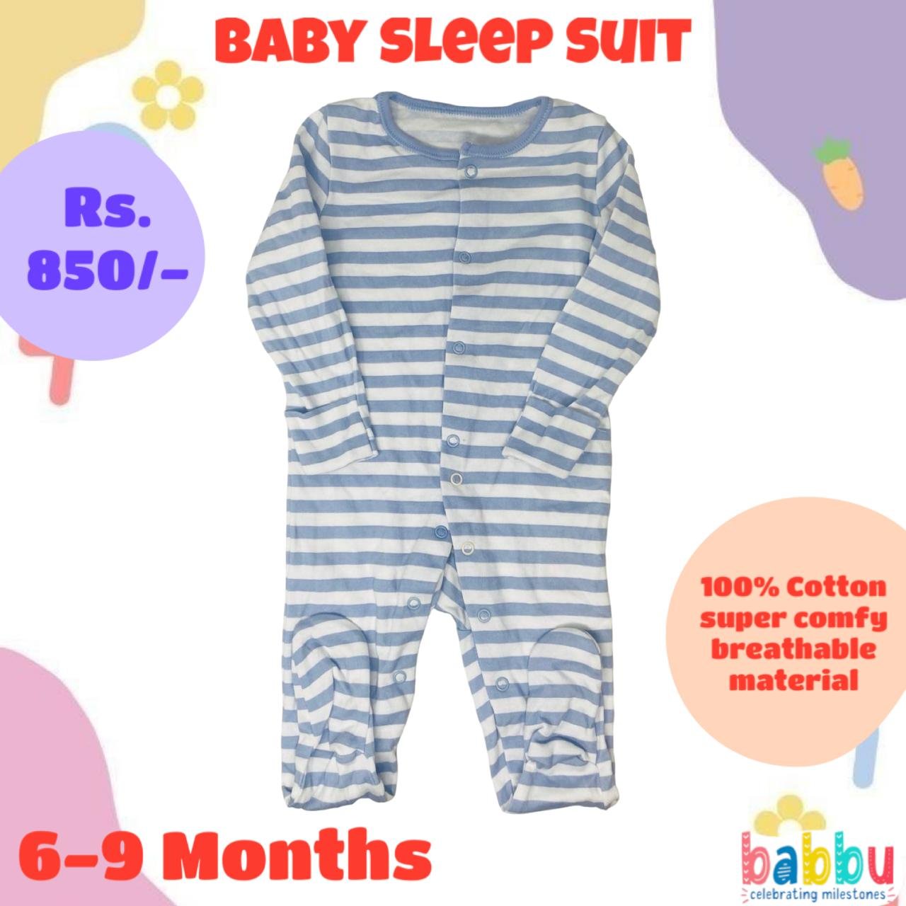 Sleep suits 6-9 Months – Light Blue and White Stripes
