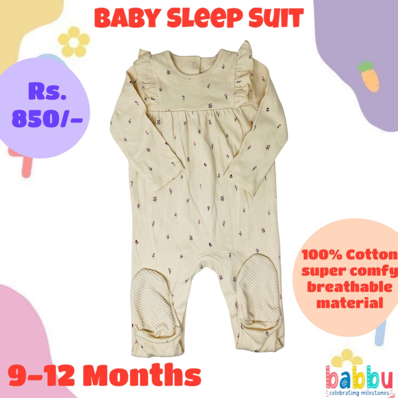Sleep Suits 9-12 Months – Beige Small Red Flowers