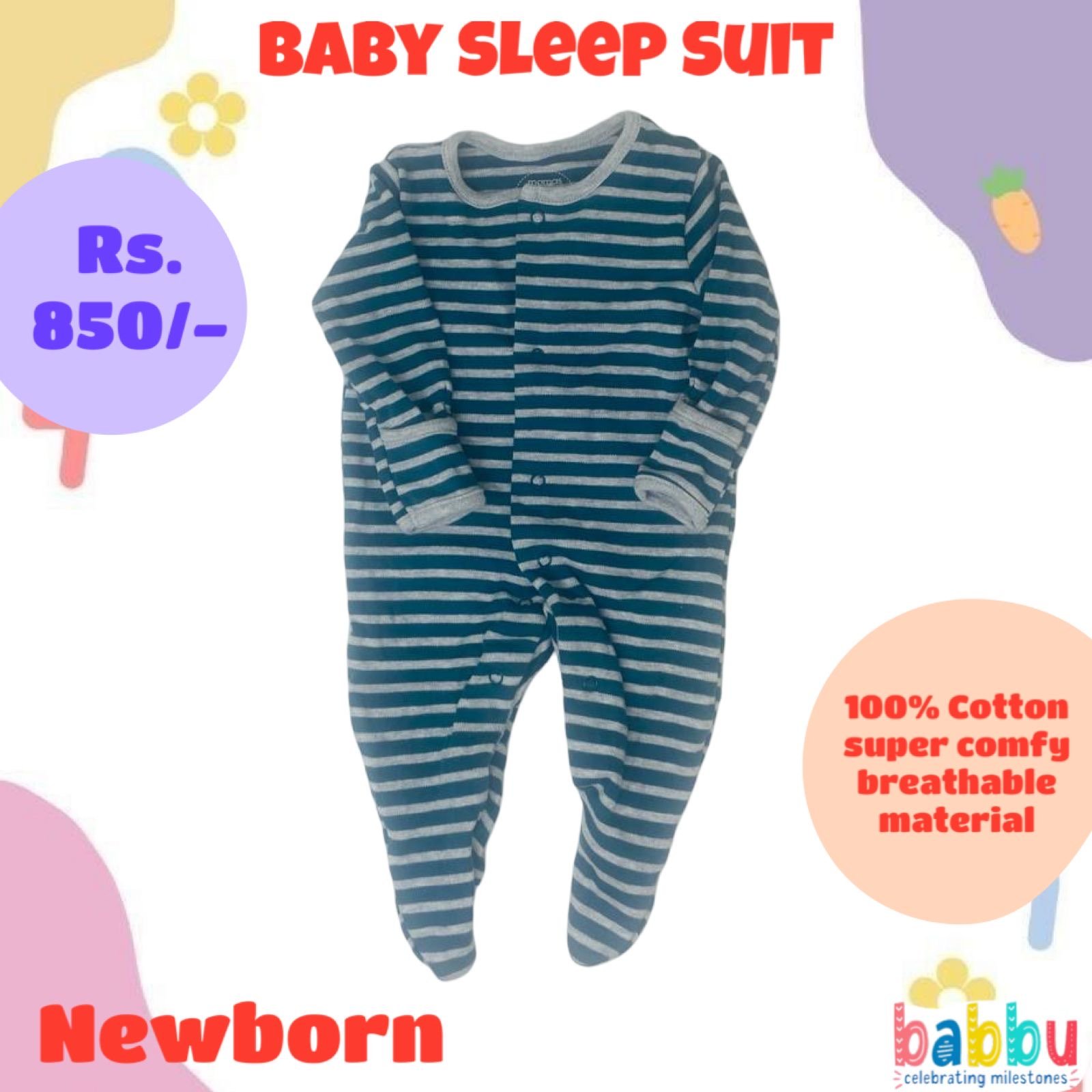 Sleep suits Newborn – Green with Grey Stripes