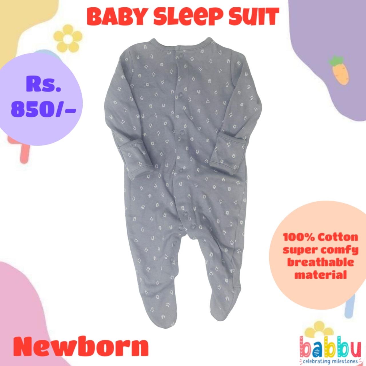 Sleep suits Newborn – Grey with White Shapes