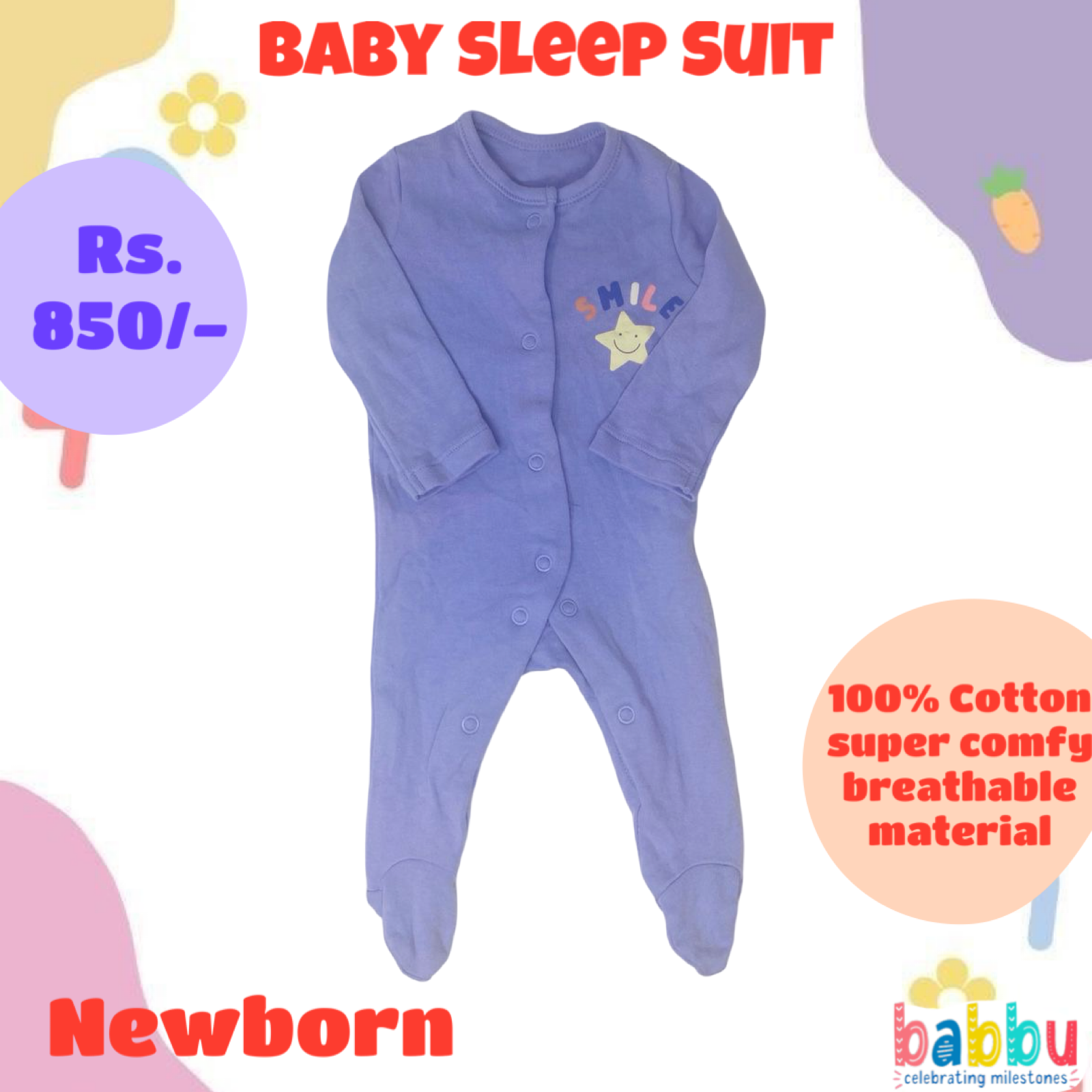 Sleep Suits Newborn – Purple Smile