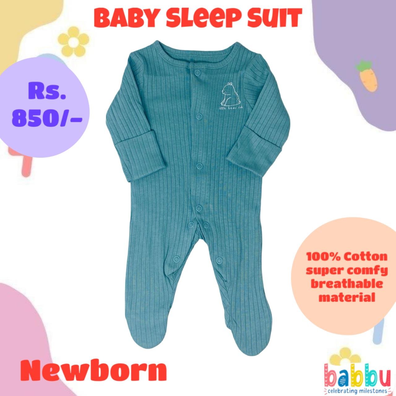 Sleep suits Newborn – Textured Green with Little Bear Print