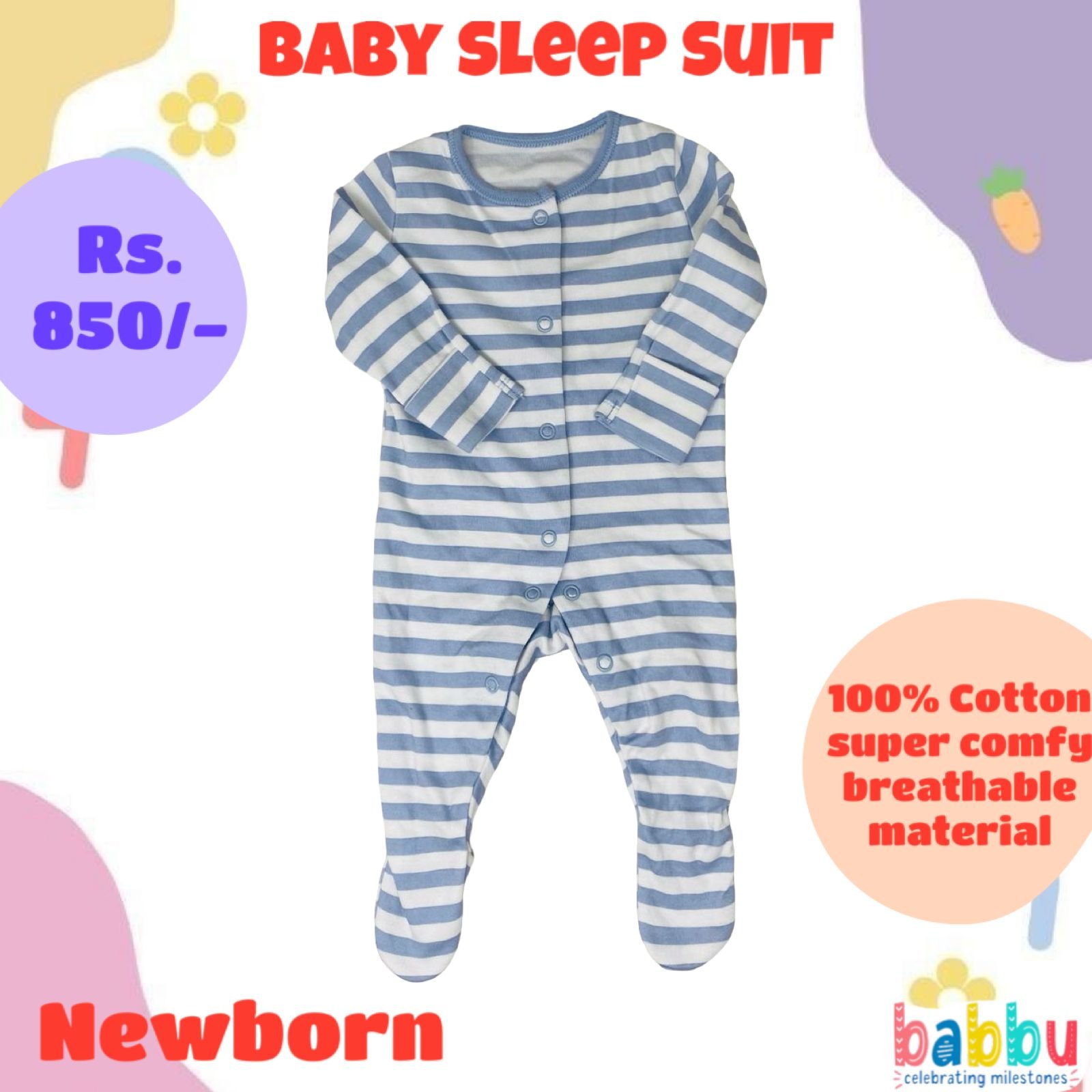 Sleep suits Newborn – White and Light Blue Stripes