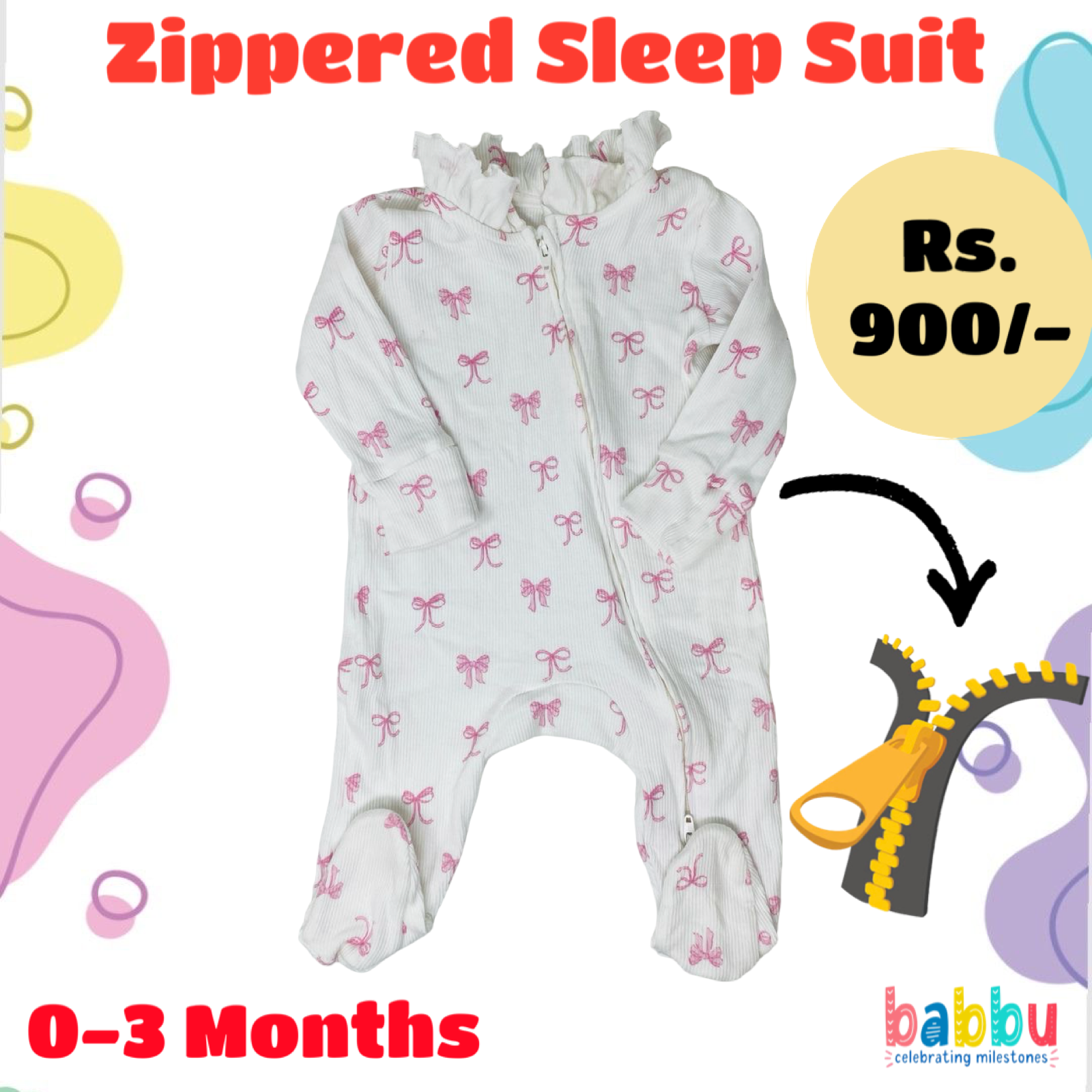 Zipper Sleep suits 0-3 Months – White with Pink Bow