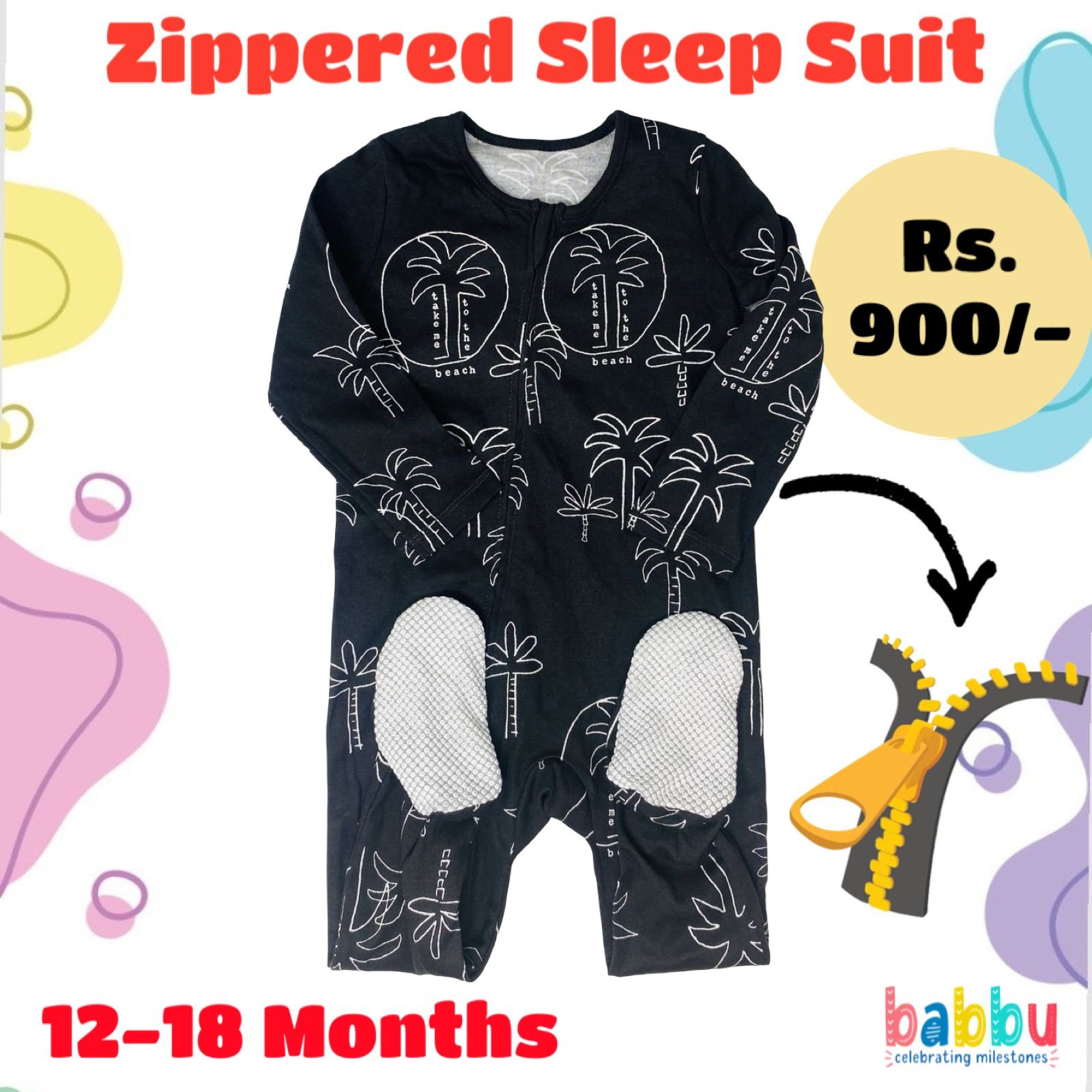 Zipper Sleep suits 12-18 Months – Black with White Trees