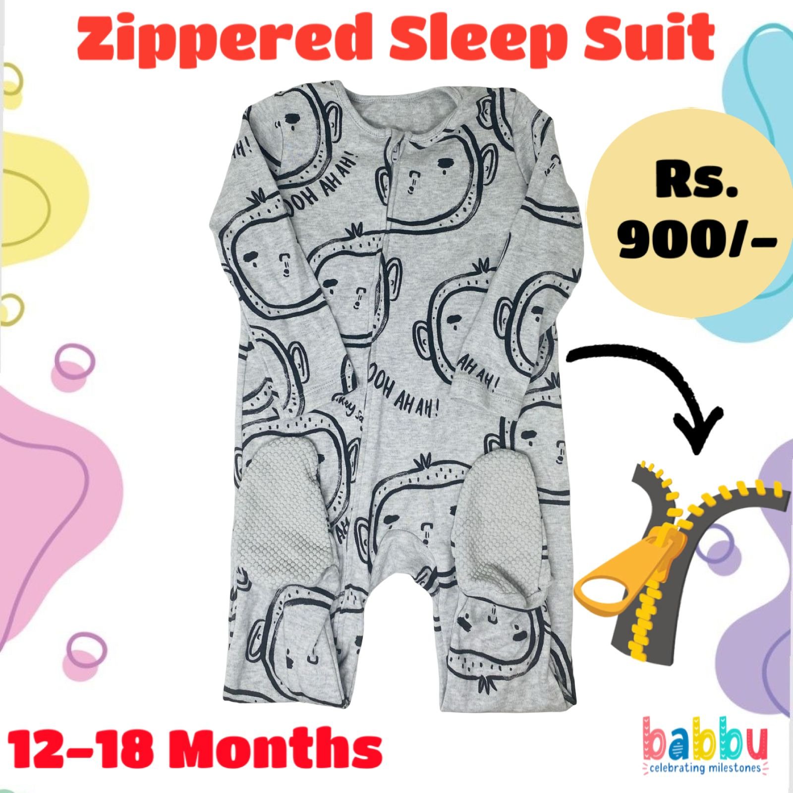 Zipper Sleep suits 12-18 Months – Grey with Money Faces