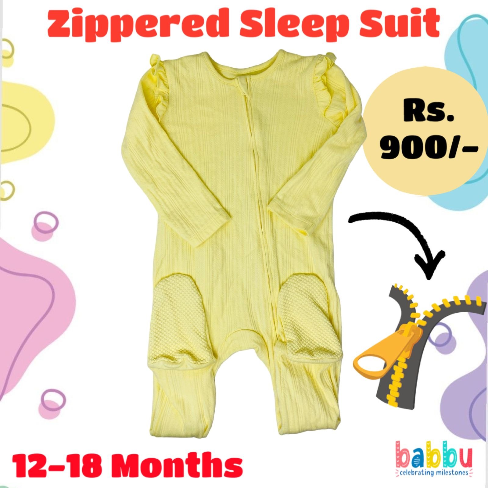 Zipper Sleep suits 12-18 Months – Yellow