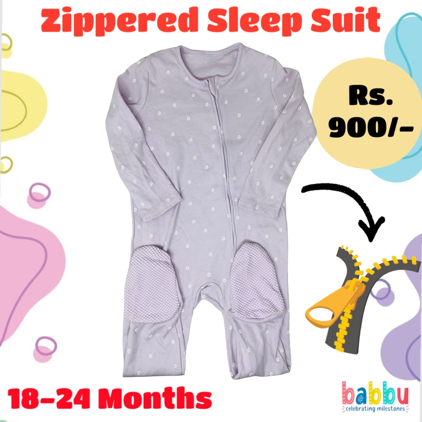 Zipper Sleep suits 18-24 Months – Brushed Purple with Small Flowers