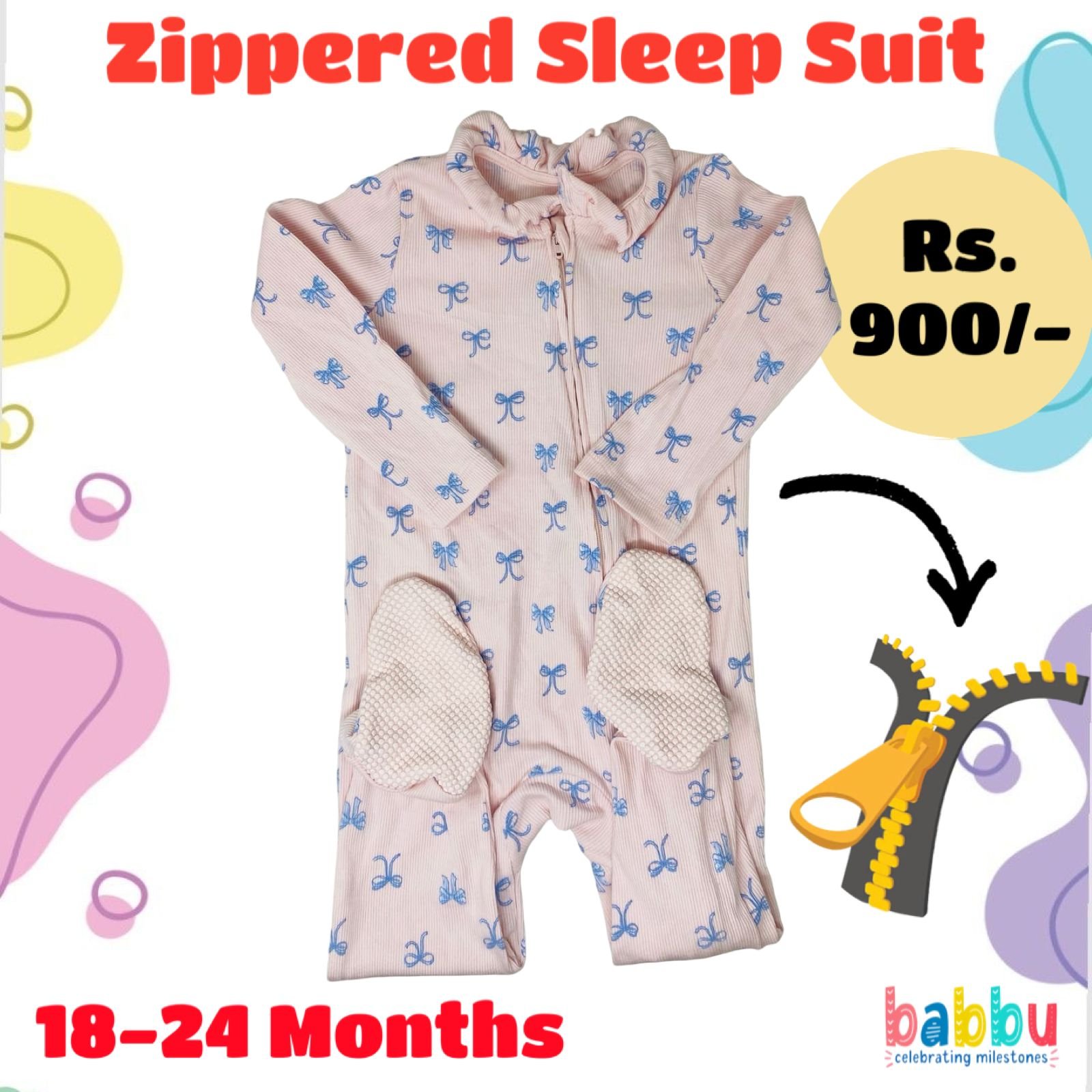 Zipper Sleep suits 18-24 Months – Pink with Blue Bows