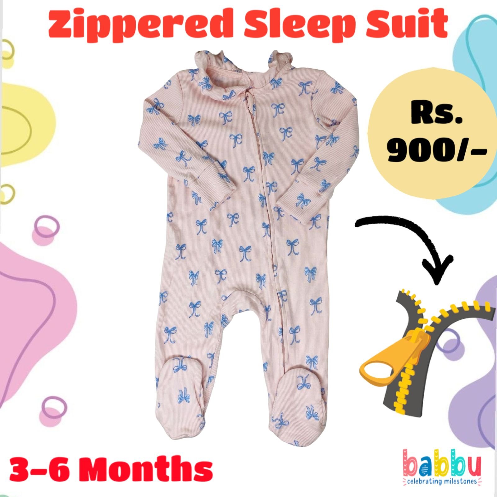 Zipper Sleep suits 3-6 Months – Pink with Blue Bow