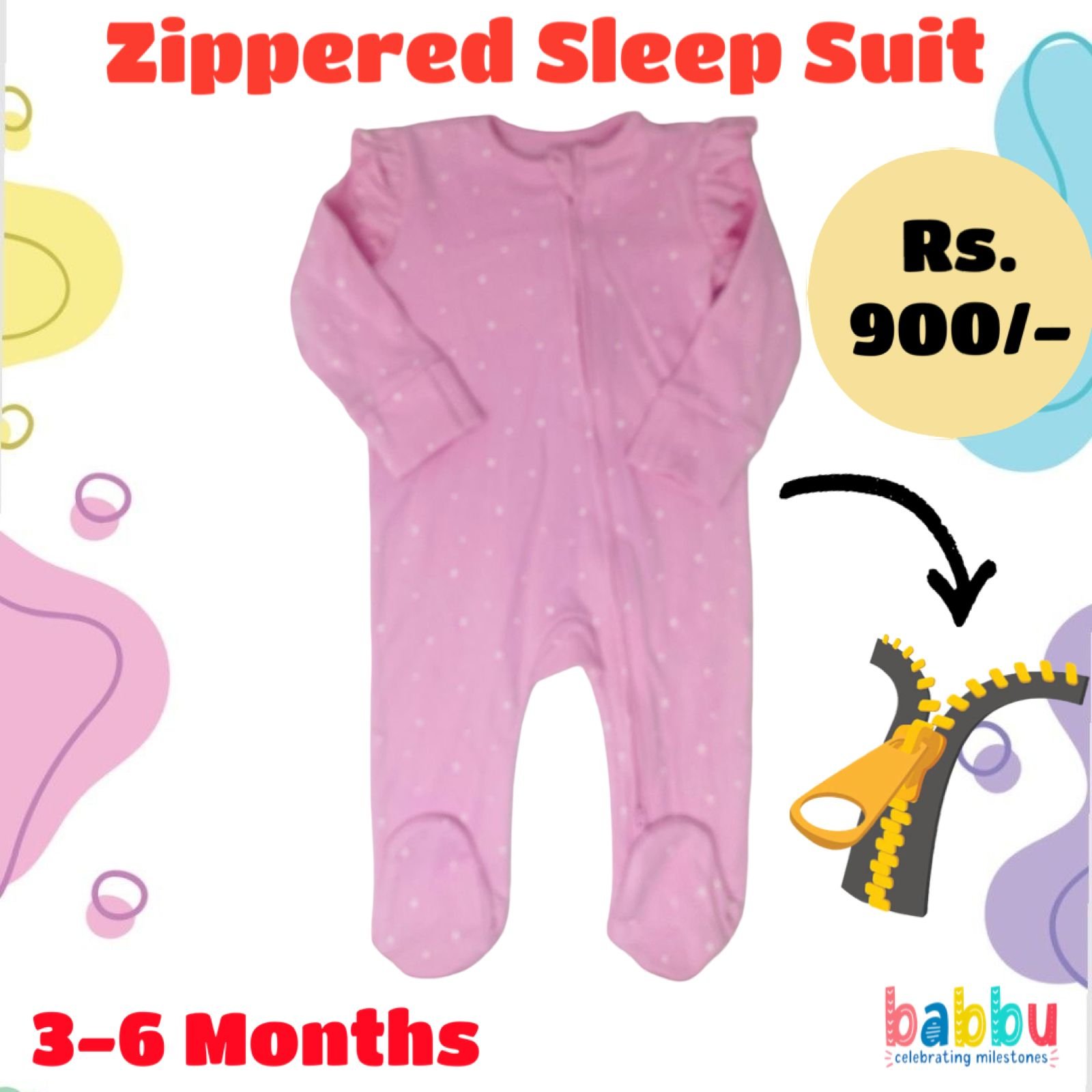 Zipper Sleep suits 3-6 Months – Pink with White Hearts