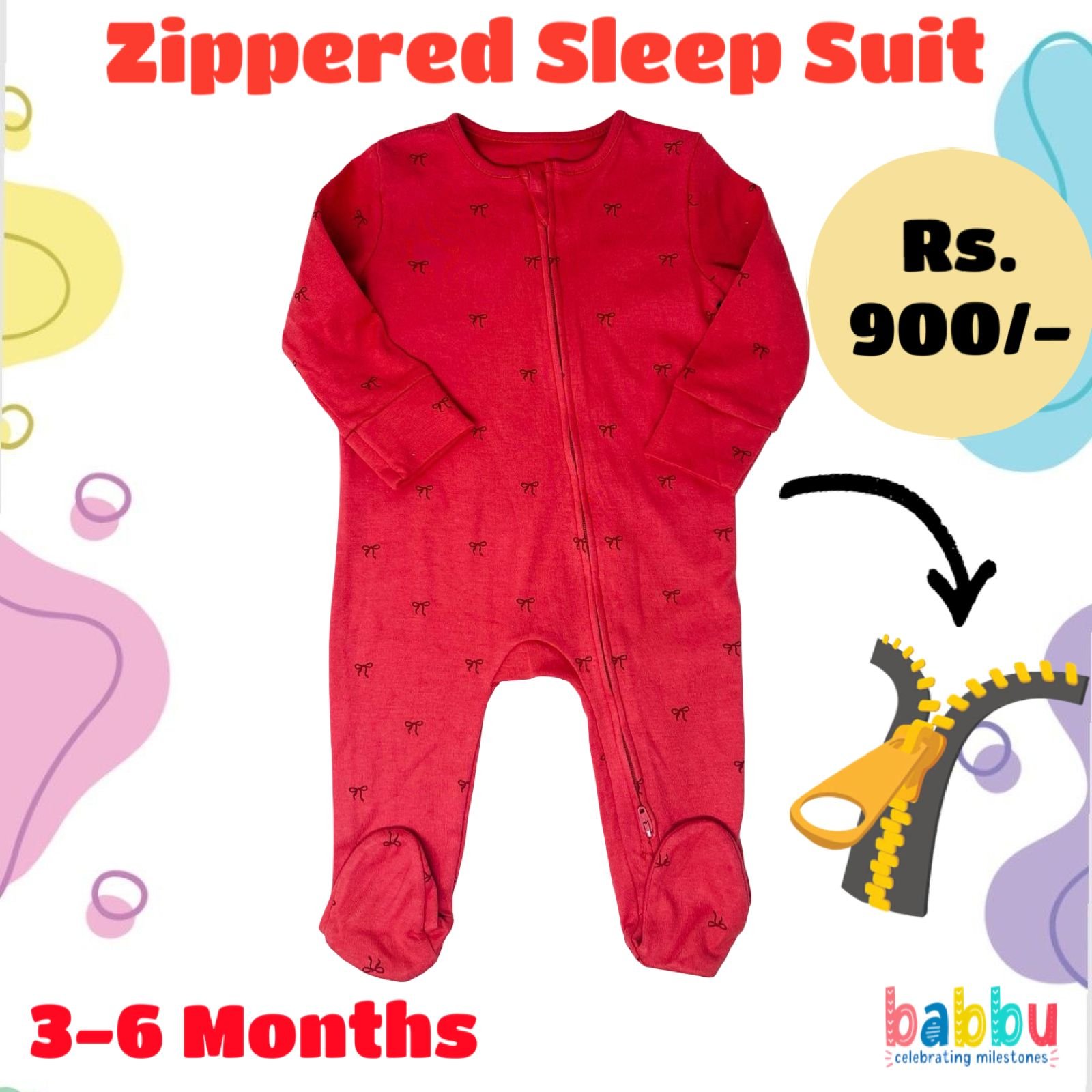 Zipper Sleep suits 3-6 Months – Red with Small Bows