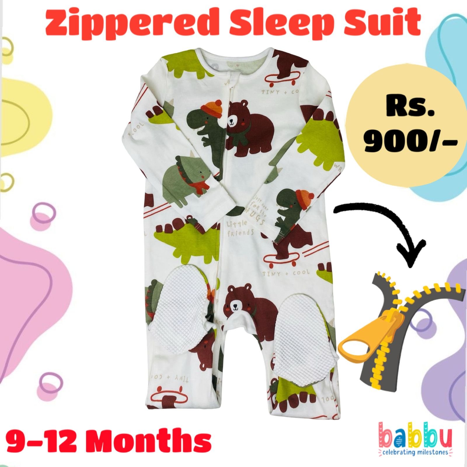 Zipper Sleep suits 9-12 Months – Big Bears and Dinos