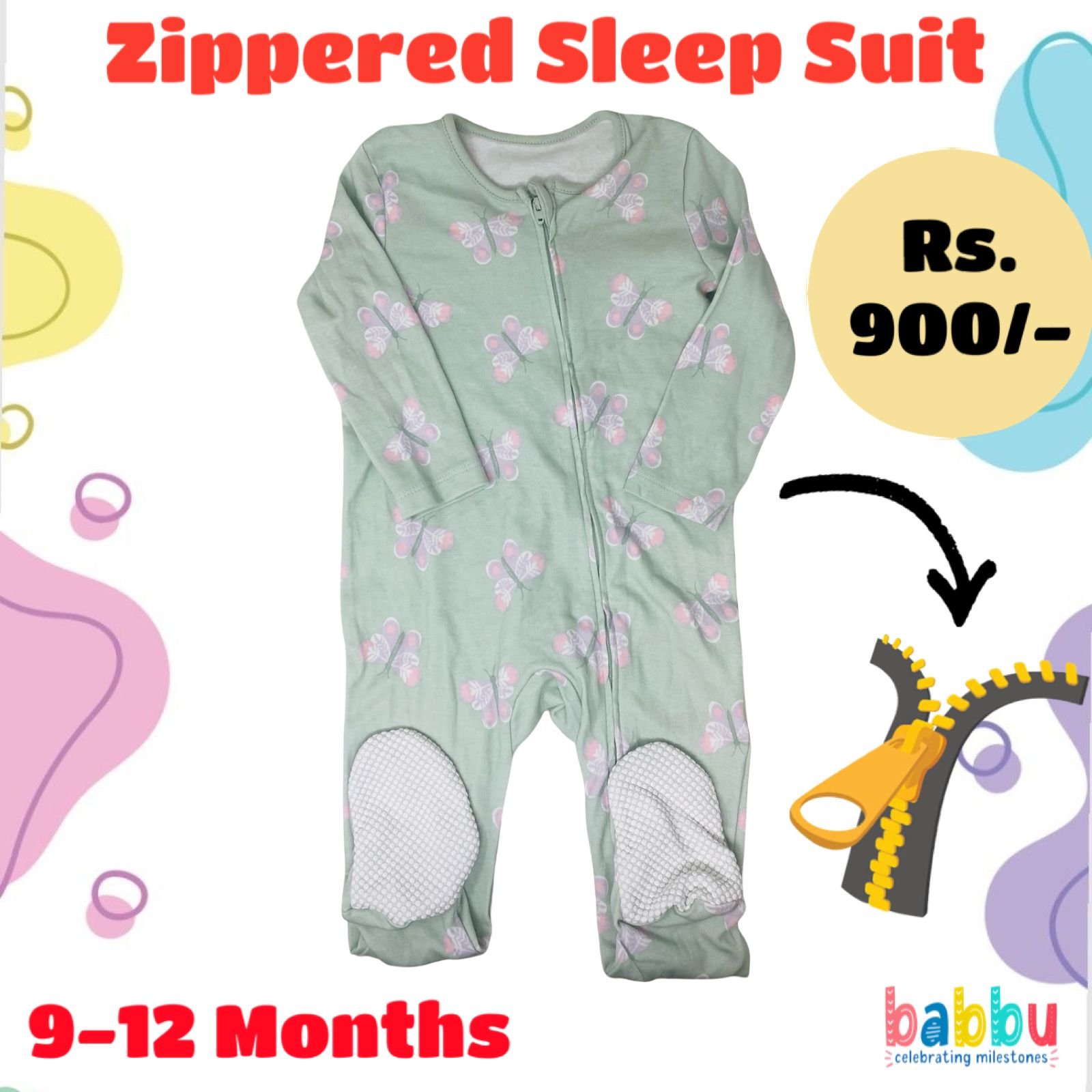 Zipper Sleep suits 9-12 Months – Green with Butterflies